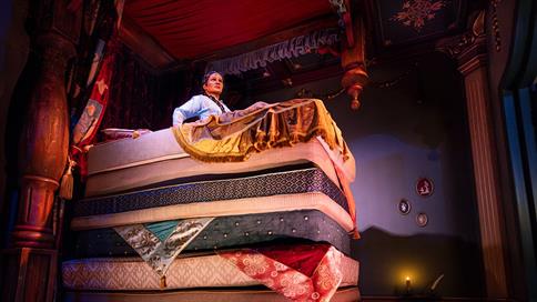 At the edge of the Fairytale Forest you can see how a tiny pea under a pile of mattresses disturbs the sleep of a real princess.