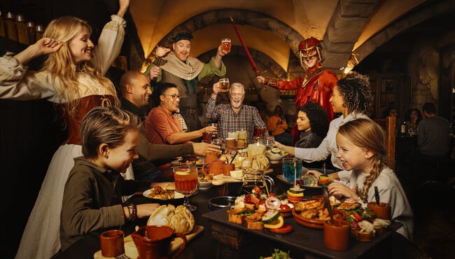 Vier in restaurant Het Wapen van Raveleijn het overwinningsfeest mee en beleef een uniek heldendiner voor de hele familie! Het programma, dat in totaal drie uur duurt, start in de magische stad Raveleijn waar je de spectaculaire parkshow bekijkt vanaf een gereserveerd gedeelte van de tribune.