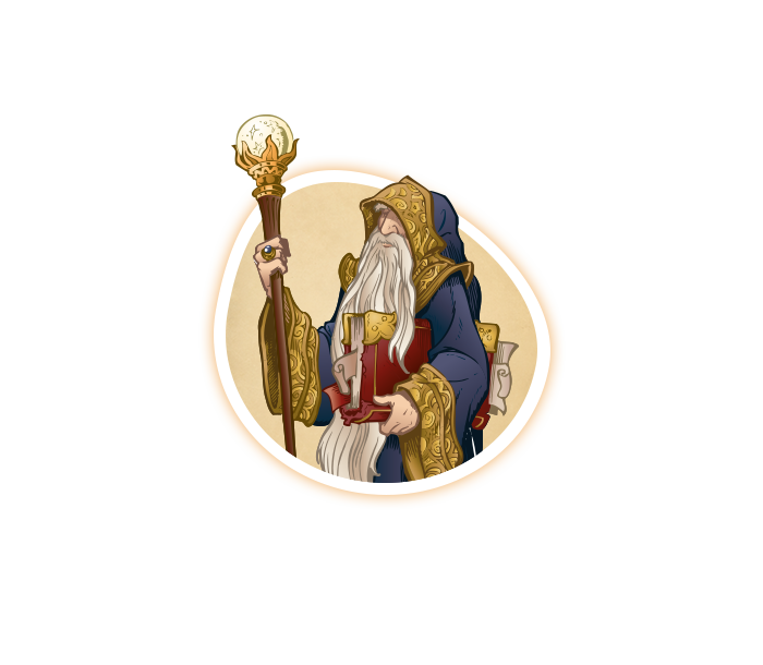 Von allen Meistern in Symbolica weiß ich am meisten. Deswegen bin ich Großmeister. Als Ratsherr berate ich den König. Früher war ich viel auf Reisen. Jetzt beschäftige ich mich von meiner Sternwarte aus mit höherer Sternkunde. Mit meinem Grando Chronoskop fange ich gern unbekannte Bereiche des Universums ein. In der Zauberakademie unterrichte ich auch darüber! Glaub mir: Du bist nie zu alt zum Lernen!