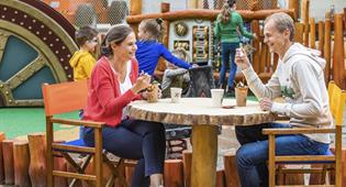 All die vielen Eindrücke im Spielwald Nest! machen hungrig. Genieße auf der Terrasse von 't Verwende Nest! einen leckeren Baumstriezel Kurkentrekker und ein heißes oder kaltes Getränk.