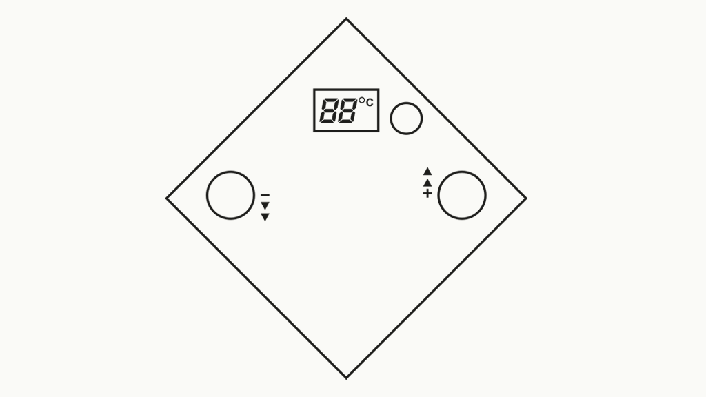 - Anschließend auf ‚+/-‘ (Tasten 4 und 5) drücken, um die Temperatur einzustellen.