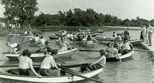 In 1933, Chaplain Rietra and Pastor De Klijn conceive a plan to install a sports park to the South of Kaatsheuvel. With this idea, the basis for Efteling was born. Two years later, on 19 May 1935, R.K. Sport and Wandelpark opens, with a main football pitch, two training pitches and a playing field. One year later a playground is installed next to the sports park, with among others a steam carousel, a high slide, a cable way and a real pony ride. During the following years the sports park continues to expand for the important exhibition De Schoen (The Shoe) in 1949.