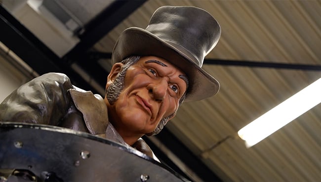 Soon, the chimney sweep will occasionally rise from the large chimney and look around. Animatronics Specialist Raymund van Riel explains exactly how it works: “The chimney sweep was sculpted in the Efteling workshop, the Gildehuys. After that, I created the animatronic technology so it moves like a real chimney sweep. The animatronic is lowered into the chimney as a whole. That’s quite a challenge, since the chimney is 14.5 metres tall.”