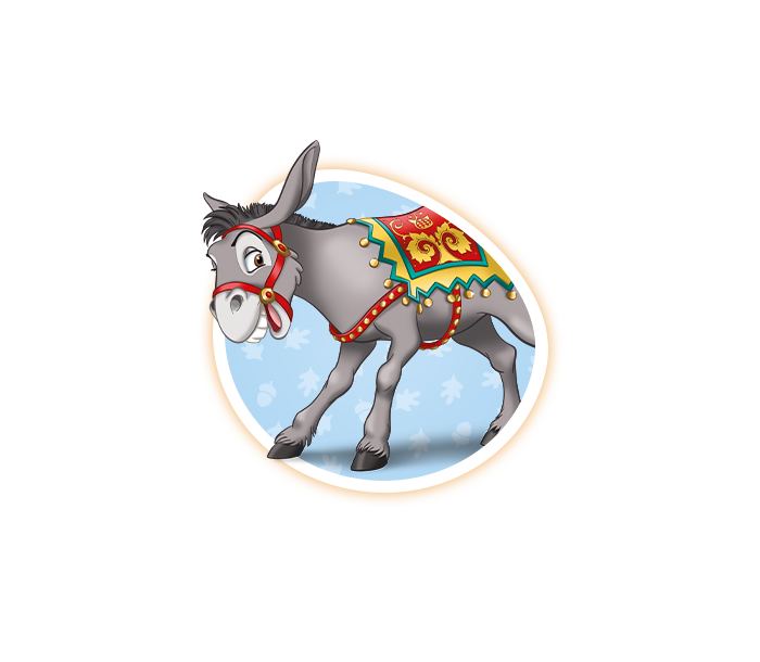 If you call out “Donkey, lift your tail”, I'll poop gold coins! Only Fakir knows my secret. If I could choose, I would rather be a normal donkey. Then I could run around in the Fairytale Forest! But the Witch has enchanted me. That's why I'm stuck on my pedestal. Luckily, the inhabitants of the Fairytale Forest like to come by for a chat. I know all the gossip, really I do!