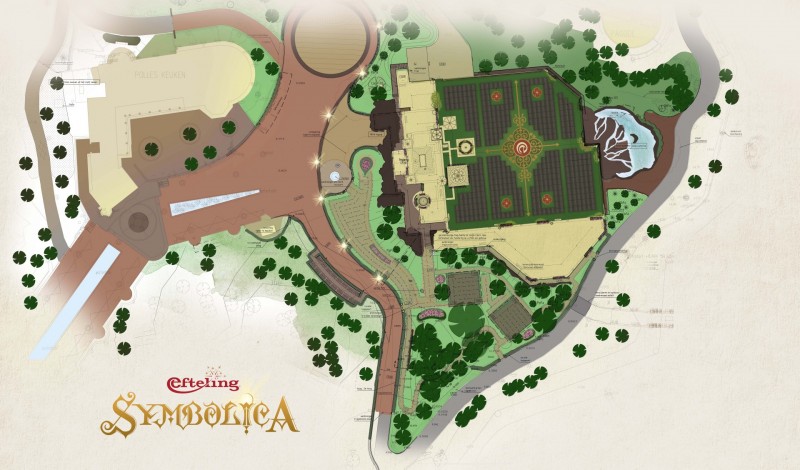 In Efteling, the theme park in the south of Holland, the new attraction Symbolica: Palace of Fantasy is now being built. The palace is being built in honour of the 65th jubilee of the theme park, and will open its doors to the public this summer. Today Efteling is publishing a sketch of the palace garden that is being created on the roof of the attraction. The garden is unique for its theme-based design, in which approximately 800 solar panels have been included for the generation of sustainable energy.