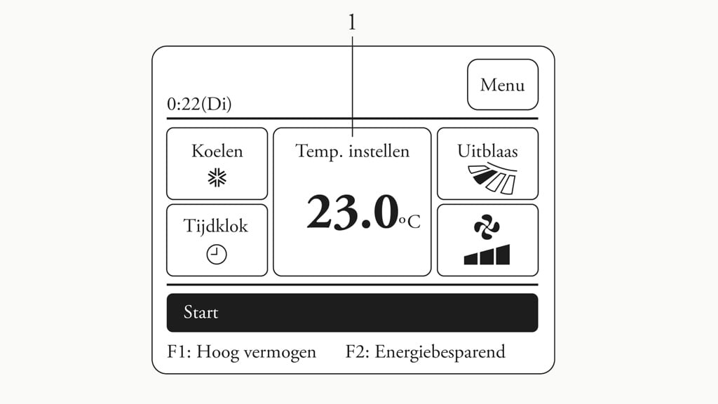 2: Press the ‘’Instellen (set)‘’ button to set the selected temperature.*