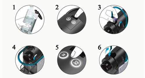1: Rinse out the water tank and then fill it with water. The water tank can be removed by lifting it.