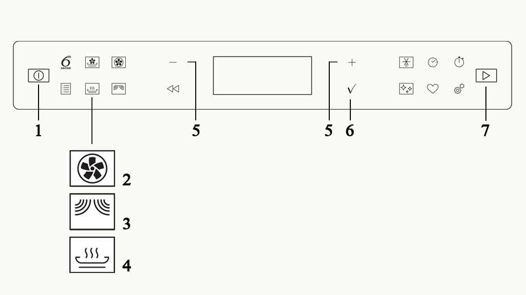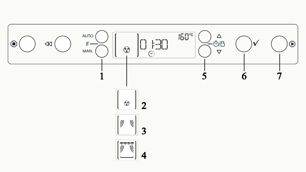7. Press the start button (button 7). When the microwave function is selected, the microwave will start automatically after the tick is pressed.