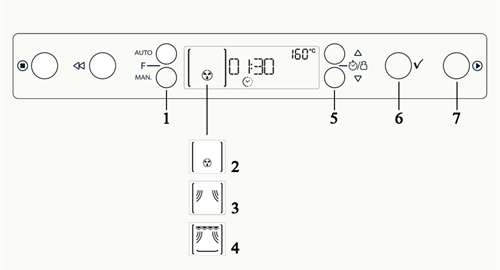 5. Confirm your choice by pressing the tick again (button 6). The oven will start automatically.