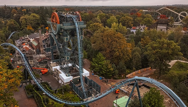 Pour les visiteurs qui trouvent Baron 1898 trop intense ou qui ne mesurent pas encore 1,32 mètre, Efteling ouvrira à l’été 2026 une nouvelle attraction à chute libre pour toute la famille : Hooghmoed. Les travaux ont déjà commencé pendant la maintenance de Baron 1898. Le terrassement est terminé, l’infrastructure souterraine est installée et les fondations ont déjà commencé.