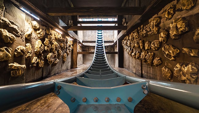 Découvrez dans la boutique De Gevoelighe Plaet la nouvelle gamme de produits photo et de souvenirs – indispensables pour les vrais mineurs ! Vêtements (hoodies, t-shirts, chaussettes) et accessoires comme un sac en toile stylé ou une casquette. Vous y trouverez aussi des magnets, porte-clés, cartes postales, un mug et des lingots d’or en chocolat. Et bien sûr, le nouveau set de trois pins (EPP 492–494) ! Une miniature de l’attraction et une pépite d’or sont aussi disponibles. Idée cadeau : le livre sur Baron 1898 est réédité en version luxe à couverture rigide.