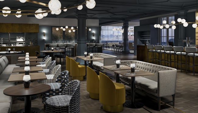 Teun : « Vous trouverez Restaurant-Bar Mystique au premier étage du Efteling Grand Hotel, directement au-dessus de restaurant Brasserie 7. Vous pourrez dîner à l’intérieur ou sur la terrasse, avec une vue imprenable sur l’Île des Cinq Sens et le magnifique spectacle aquatique Aquanura. »