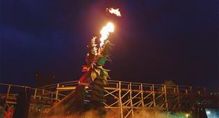 Ils devront vaincre le dragon qui terrorise le royaume. Les guerriers prennent une des deux voies et choisissent leur arme: l'eau ou le feu ! Les vainqueurs de cette montagne russe racing en bois recevront l'honneur et la gloire.