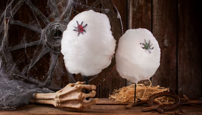 In ’t Koetshuys zijn drie soorten Charlatans gepofte mais, verkrijgbaar: Virginie’s geheime recept, zoete kleurenmix en zout. Afhankelijk van de lekkere trek zijn er twee maten kartonnen bekers beschikbaar en een premium popcorn emmer. Meer een zoetekauw? Kies dan voor een griezelige suikerspin met een spannende verrassing. Naast de reguliere versie is er ook een speciale Danse Macabre-suikerspin gedraaid op de baton van Joseph Charlatan!