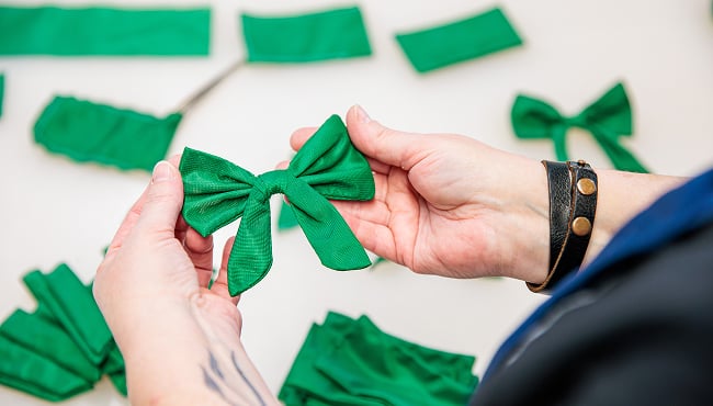 De groene stof van de recordstrik wordt niet weggegooid, maar zorgvuldig hergebruikt. “Stichting Natuurpark de Efteling staat aan de wieg van onze organisatie en daarmee zit duurzaamheid in ons DNA”, vertelt Femke van Es, Manager Maatschappij, Communicatie & Omgeving. “Bij het behalen van het officiële wereldrecord, was het voor ons dan ook vanzelfsprekend dat de stof op een goede en kwalitatieve manier gerecycled zou worden. We vinden het ontzettend mooi dat dit nu concreet is geworden en dat het materiaal op een duurzame manier een nieuw hoofdstuk krijgt.”