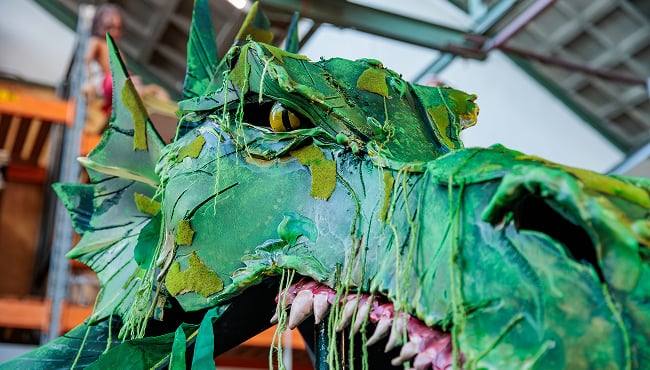 Een ander deel van de stof schittert straks op het toneel. De groene stof wordt namelijk hergebruikt in het decor van de nieuwe familiemusical “Efteling vertelt… Joris en de Draak”. Het materiaal is onder andere gebruikt voor het creëren van een imposante draak die tijdens de voorstelling tot leven komt. De musical reist vanaf december tot in het voorjaar langs theaters in Nederland en Vlaanderen.