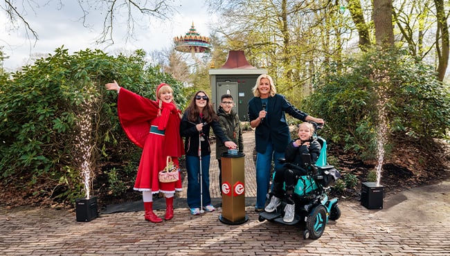 Sophie (11) en haar moeder Monique waren vandaag ook aanwezig bij de opening van het Changing Places Toilet. Sophie heeft een elektrische rolstoel waarmee zij steeds meer dingen zelfstandig kan doen en gaat er graag op uit met haar vriendinnen en gezin. Monique vertelt: “Wij kunnen alleen naar plaatsen waar oog is voor toegankelijkheid en waar Sophie kan meedoen, net zoals de rest. In de Efteling kan dat gelukkig en daarom komen we er graag. Dankzij het nieuwe Changing Places Toilet is dit nu nog beter geregeld en dat vinden we fantastisch!”