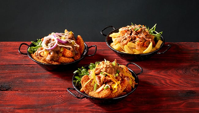 Het wordt lastig kiezen tussen de drie varianten Loaded Fries. Bovendien kun je ook kiezen tussen oerfriet met schil of zoete aardappelwedges.