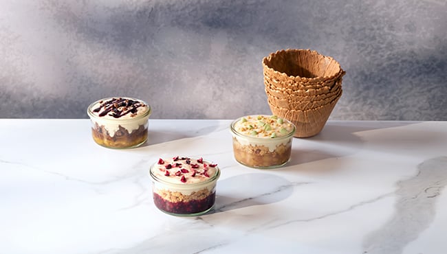 - Koninklijke Kruimel rood fruit: met rode vruchten, koekkruimels, custard en gedroogd fruit.