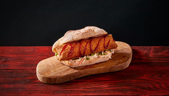 - Korean style: geroosterde kip met kimchi en siracha-mayonaise.