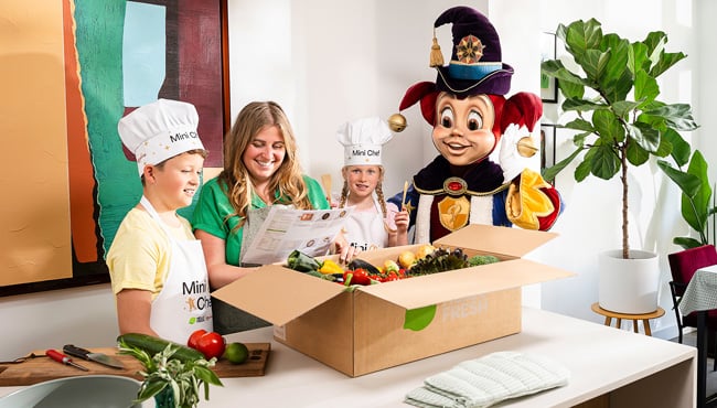 Speciaal voor jouw mini-chef(s) krijg je elke week een nieuwe verrassing in de HelloFresh Box. Van keukenschort tot pollepel! Kook elke week een Efteling-recept en spaar de speciale keukenset bij elkaar.