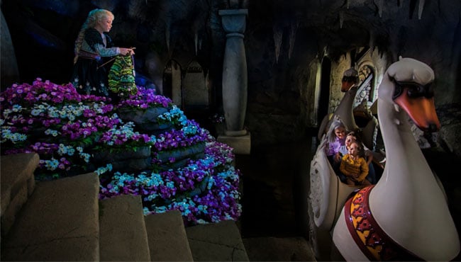 Het sprookje De zes Zwanen heeft een mooie plek gekregen in het hart van het Sprookjesbos, tussen de sprookjes van Sneeuwwitje en Assepoester aan het Herautenplein. Dit is het eerste sprookje in het Sprookjesbos dat je op twee manieren kunt beleven. Je kunt het sprookje namelijk bekijken al varend op de rug van een bijna 3 meter lange zwaan óf je kunt het slot binnenwandelen om Elisa vanaf de kant te bekijken. Bekijk de complete making-of-serie ‘De bouw van een sprookje’.