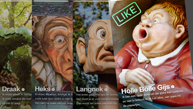 In het kader van Valentijn zitten de Efteling-bewoners Langnek, Heks, Draak of Holle Bolle Gijs tijdelijk op de datingapp Tinder. De bewoners zitten in heel Nederland verspreid dus iedereen kan ze online tegenkomen! Heb jij ze gevonden? Swipe naar rechts en wie weet ontvang je een berichtje.