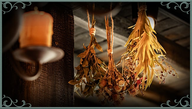 Niels: “Ooit was In den Swarte Kat een herberg, diep verscholen in de bossen. Tót menig pelgrim daar in de diepte van de nacht verdween. De herberg brandde gedeeltelijk af en de oude gelagkamer vulde zich met spinnen en ander klein gespuis. In de restanten van dit half ingestorte gebouwtje zijn de Charlatans een sfeervol kruidenierswinkeltje begonnen van waaruit zij diverse geluksbrengers, hartversterkers en andere moedverhogende artikelen verkopen om de nerveuze maar nieuwsgierige gelukzoekers van dit gebied een hart onder de riem te steken.”