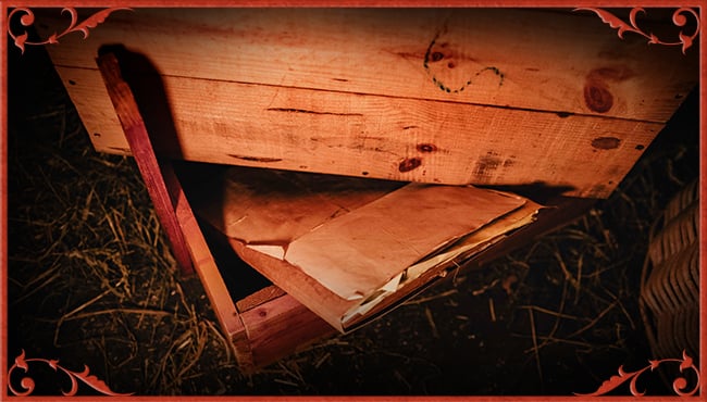 Otto: “Verstopt tussen andere spullen in de stal vonden we een stapel papieren! Het zijn dagboekpagina’s van niemand minder dan Joseph Charlatan, de voorvader van Virginie. Hij beschrijft muziek. Een compositie die hij moest spelen: de Danse Macabre.”