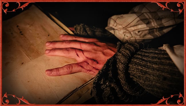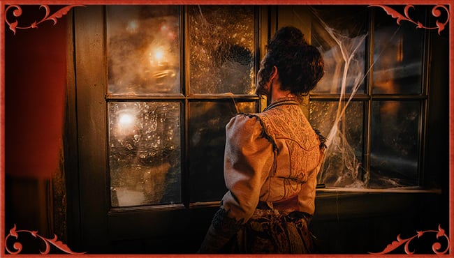 Virginie: “Dit wordt onze tweede nacht hier in de oude taveerne in het bos. De eerste nacht hebben Otto en ik nauwelijks kunnen slapen. Er klonken vreemde geluiden. Ik weet niet hoe het kan, maar tegen het aanbreken van de ochtend hoorden we voetstappen. Iets of iemand leek ons onderkomen binnengedrongen te zijn. Deze taveerne heeft een ver, maar duister verleden. Ik voel het.”