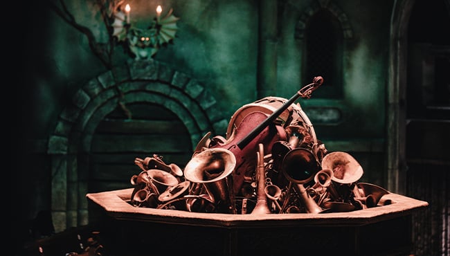 Zoals je van de Efteling kunt verwachten is dit een compleet gebied. De sfeer is overal doorgevoerd: er is een souvenirshop, er zijn twee horecalocaties en er is zelfs een toiletgebouw helemaal in spannende stijl van Danse Macabre: de Laetste Hoop. Zelf op het toilet krijg je dus dat spooky gevoel! We werken in het Huyverwoud met een mix van oude en nieuwe materialen. Er is in het hele gebied veel techniek aanwezig, maar dan wel zo geïntegreerd dat het niet opvalt. Bovendien laten we deze techniek duurzaam voor ons werken zonder afbreuk te doen aan de sfeer.”