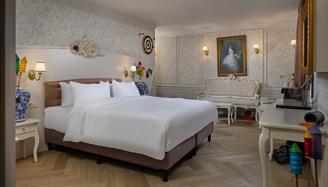 Grapjassen kunnen hun lol op in de Max & Moritz Suite. In deze ruime themasuite zijn de streken van de kwajongens niet te missen. Maar niet alles valt meteen op... sommige grapjes ontdek je pas als je hier blijft slapen. In de themasuite vrolijke muziek en gekke geluiden, net als in de attractie in de Efteling.