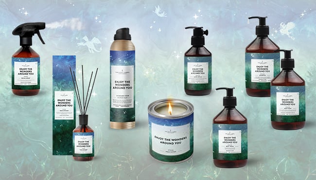 In de verzorgingslijn komen vier verschillende geuren terug. De warme geur ‘Kumquat & Bourbon Vanilla’ met sporen van kaneel, gember en vanille ruik je in de handzeep en handlotion. In de bodywash, bodylotion, shampoo en showerfoam ruik je de fruitige geur ‘Mandarin Musk’, waarin je niet alleen verschillende fruitsoorten ontdekt maar ook de warme geur van cedar en amber. ‘Fresh cotton’ is een frisse geur met citrus en jasmijn, perfect voor de geurkaars. ‘Pomelo & Black Pepper’ geurt kruidig naar een combinatie van pomelo en zwarte peper. Deze ruik je in de geurstokjes en de roomspray.