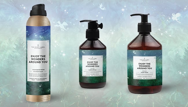 De nieuwe verzorgingslijn van de Efteling bestaat uit acht verschillende producten van The Gift Label. Allemaal voorzien van een sprookjesachtig Efteling-etiket. Er is een lichaamsverzorgingslijn met handzeep, handlotion, bodyfoam, bodywash en shampoo. De home-lijn bestaat uit geurstokjes, roomspray en de geurkaars (24 branduren). Een aantal van deze producten wordt los verkocht in de souvenirwinkel Efteldingen in het park en bij de verblijfslocaties. Er zijn bovendien ook gift-sets verkrijgbaar. Een leuk cadeautje voor thuis!
