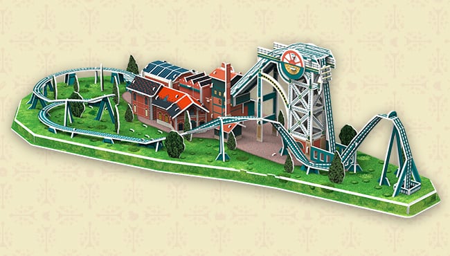 Kun je geen genoeg krijgen van de spannende dive coaster Baron 1898? In deze attractie stort je 37,5 meter naar beneden de ondergrondse mijn in. Pas wel op voor de Witte Wieven die jouw kans op rijkdom proberen te saboteren. Met deze 3D-puzzel kun je thuis de achtbaan zelf opbouwen! Deze puzzel bestaat 99 stukjes. Eenmaal opgebouwd is de puzzel 62,5 bij 28,4 centimeter groot en 14,4 centimeter hoog.