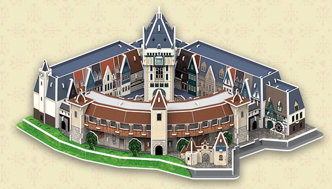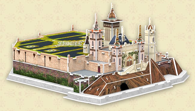 Ben jij fan van de familie-attractie Symbolica? Met deze 3D-puzzel kun je zelfs thuis op audiëntie bij de koning. In deze attractie vaar je in de Fantasievaarders door een betoverend paleis waar fantasie tot leven komt. De puzzel is van de buitenkant van het paleis en bestaat uit 107 stukjes. De puzzel van Symbolica is 39,7 bij 39 centimeter groot en 14,7 centimeter hoog.