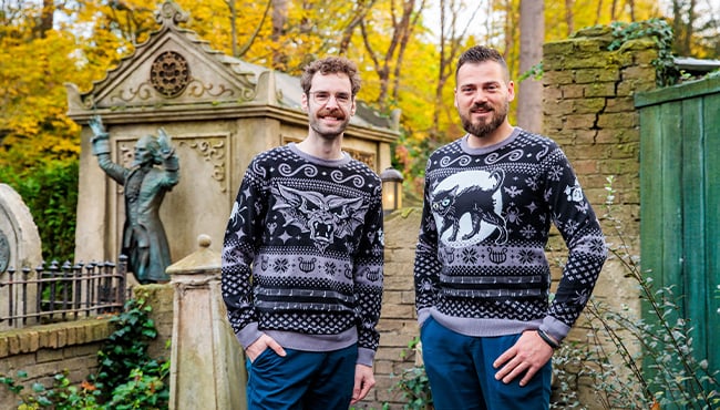 De wintertrui van 2025 is er in twee varianten: één met het zwarte katje voor zowel kinderen (maat 110-116 t/m 158-164: € 30,-) als volwassenen (maat S t/m XXXL: € 40,-) en een variant met de Monsterkat voor volwassenen (maat S t/m XXXL: € 40,-). Leuk detail: er is gewerkt met glow-in-the-dark garens waardoor onder andere de ogen van het katje oplichten!
