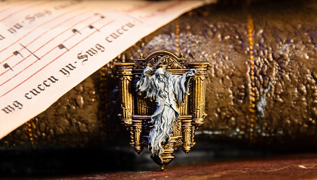 Sinds vrijdag 13 december kun je de nieuwe Danse Macabre pin met dirigent Joseph Charlatan bemachtigen in de Efteling! Hierop prijkt het orgel uit Danse Macabre waar de dirigent voor zweeft. De pin heeft EPP-nummer 480, kost € 10,- en is gelimiteerd verkrijgbaar bij Dr. Charlatans Kwalycke Zaken. Er geldt een maximum van 3 pins per persoon.