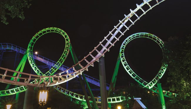 Ga bij maanlicht over de kop in de Python, reis met de Stoomtrein onder de fonkelende sterren of bekijk het sprookjesachtige verlichte park vanuit de Pagode. De parkshow Raveleijn is in de avond nog spannender dan overdag en met een gitzwarte hemel als achtergrond komen de licht- en vuureffecten van de sensationele watershow Aquanura helemaal tot hun recht.