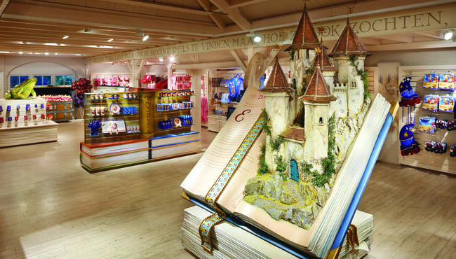 Wist je dat ook de souvenirwinkels in de Efteling een ware belevenis zijn? Misschien heb je wel een regenponcho met Efteling-paddenstoelen erop nodig of magische paraplu, waarbij in de regen Efteling-bewoners zichtbaar worden? De souvenirwinkels vlakbij de attracties hebben een speciaal assortiment: 1001 Oosterse souvenirs bij De Bazaar, souvenirs uit het Paleis der Fantasie in Symbolica en de leukste dierenknuffels, -verkleedkleding en -accessoires bij Fabula. De Gulden Gaarde bij Droomvlucht is een winkel vol elfjes, jurken en andere leuke souvenirs en in Jokies Wereld vind je allerlei producten om ook thuis op avontuur te gaan met Jokie & Jet.