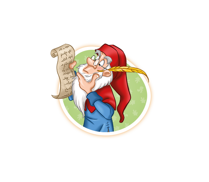 Ik schrijf de hele dag door, want dat vind ik het fijnste wat er is! Ik schud de verhaaltjes zo uit mijn mouw. Mijn schrijftafel staat in de Holle Boom. Als kabouter pas ik daar makkelijk in! Ik woon daar samen met mijn eekhoorn en dat is heel erg gezellig!