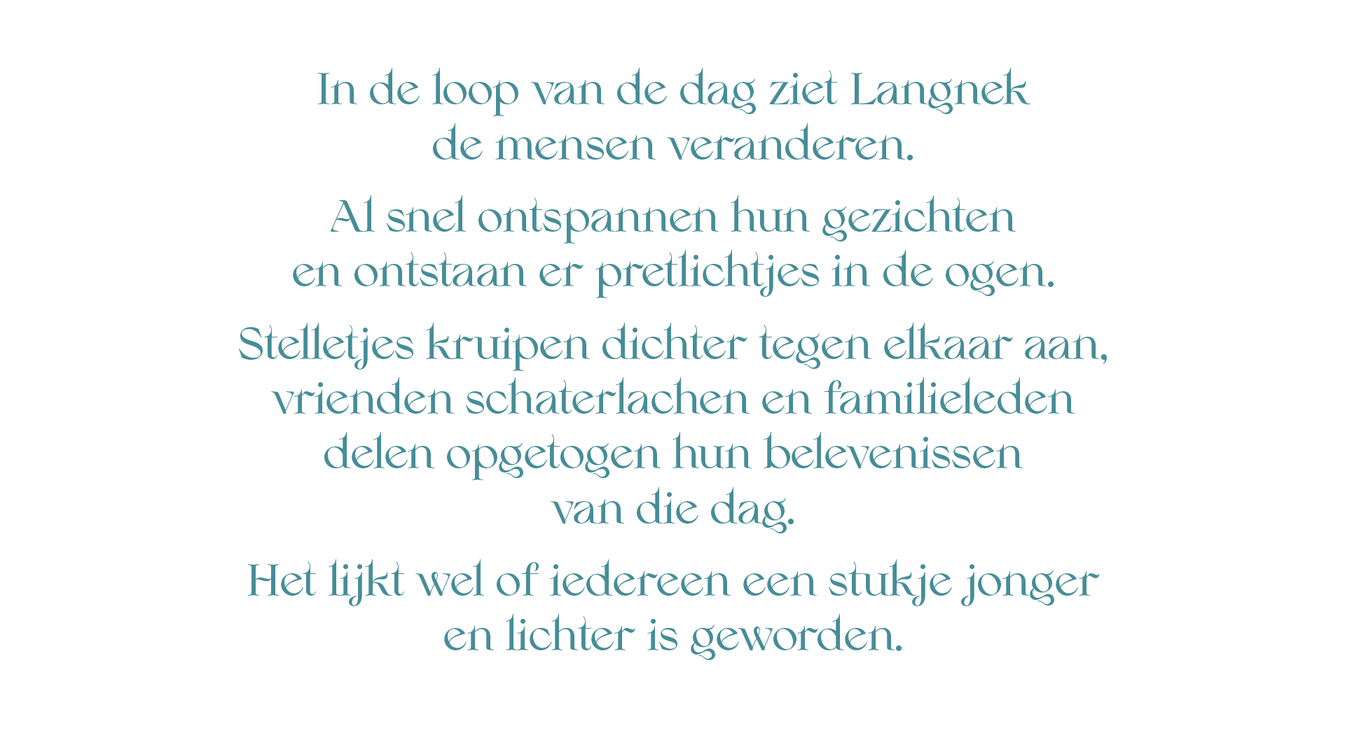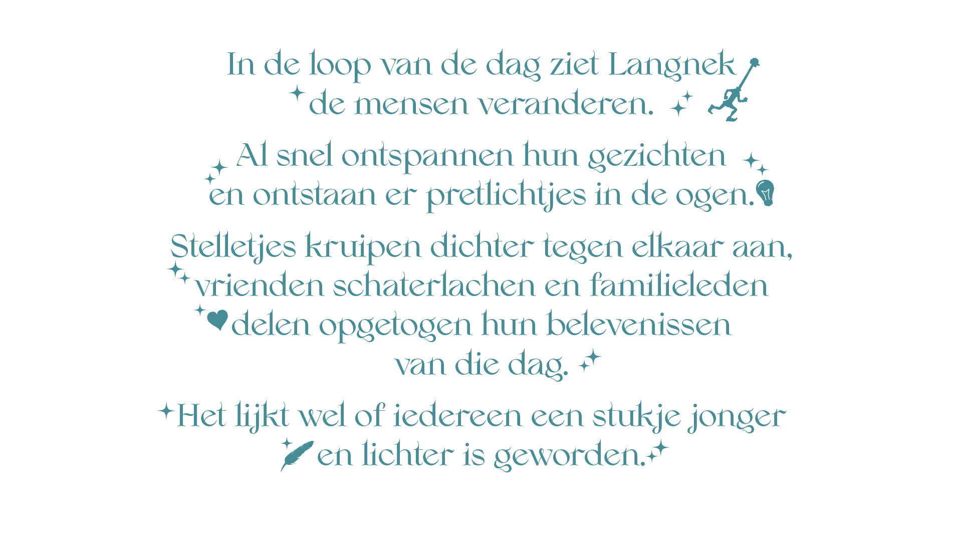 En misschien wel het allermooist: we zitten in dat mandje met kostbare herinneringen waar iemand op z’n oude dag nog met een glimlach aan terugdenkt.