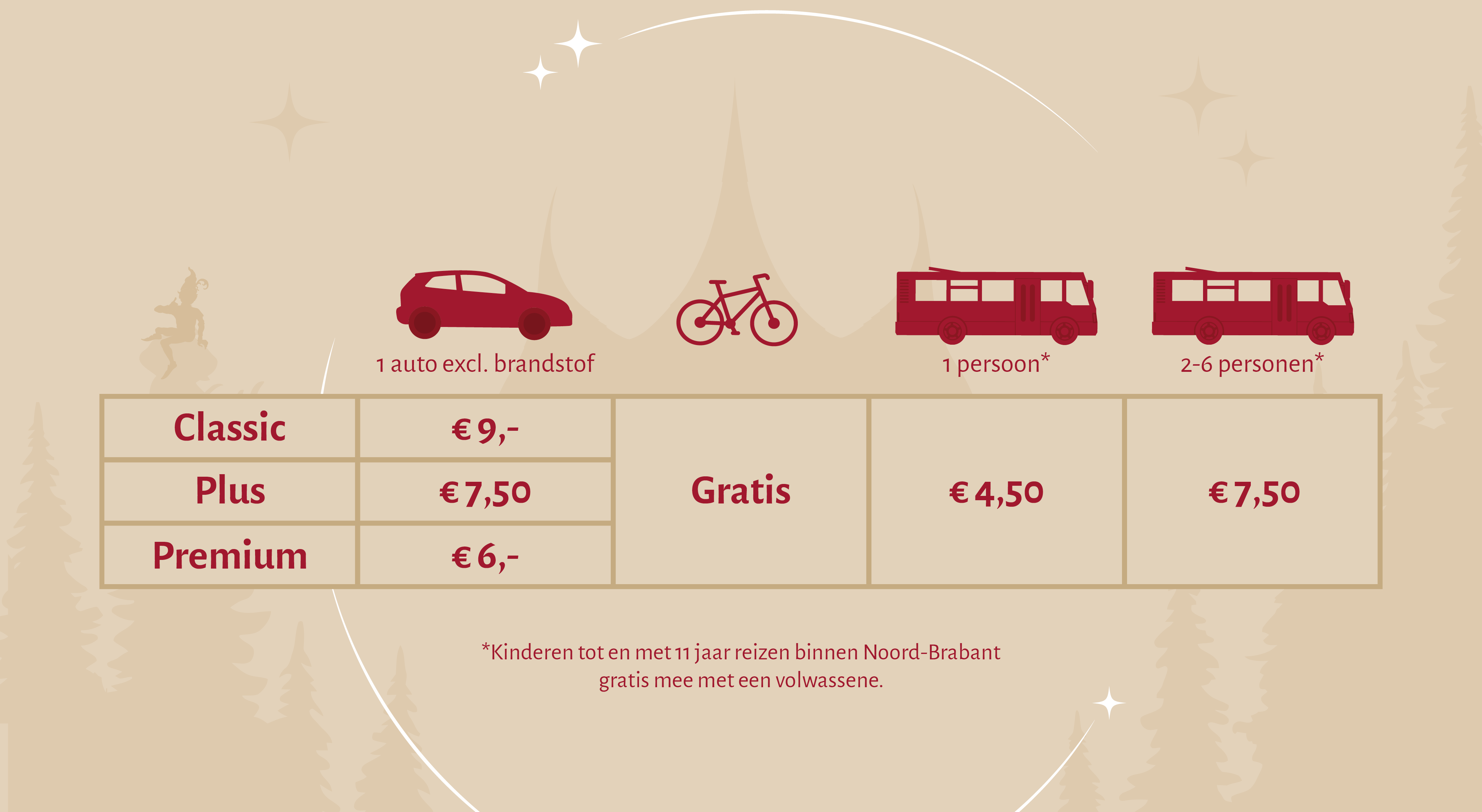Voor slechts € 7,50 reis je met maximaal zes Efteling-abonnementhouders binnen Brabant met de bus naar de Efteling én weer terug naar huis. Reis je alleen als abonnementhouder? Dan betaal je € 4,50. Kinderen tot en met 11 jaar reizen altijd gratis met de bus binnen Brabant. Een voordelige en duurzame manier om je bezoek te plannen dus!