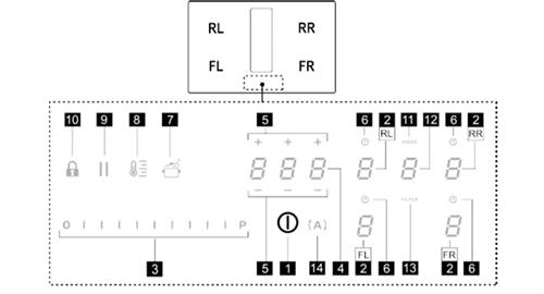 4. Zet de kookplaat uit door op de AAN-/UIT-knop (toets 1) te drukken. Op het display van de gebruikte kookzone verschijnt dan een 'H'. Dit betekent dat de kookplaat nog restwarmte heeft.