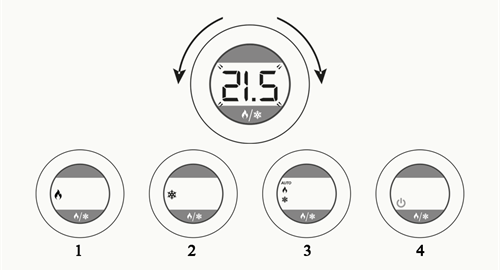 1. Draai de instelring naar links (kouder) of naar rechts (warmer) om de temperatuur in te stellen. Wanneer je de ring loslaat bevestigt de thermostaat de gewenste temperatuur door enkele malen te knipperen. Vervolgens zal de huidige temperatuur worden weergegeven.