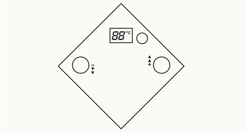 2. Om de gewenste temperatuur in te stellen druk je op de + en – knop.